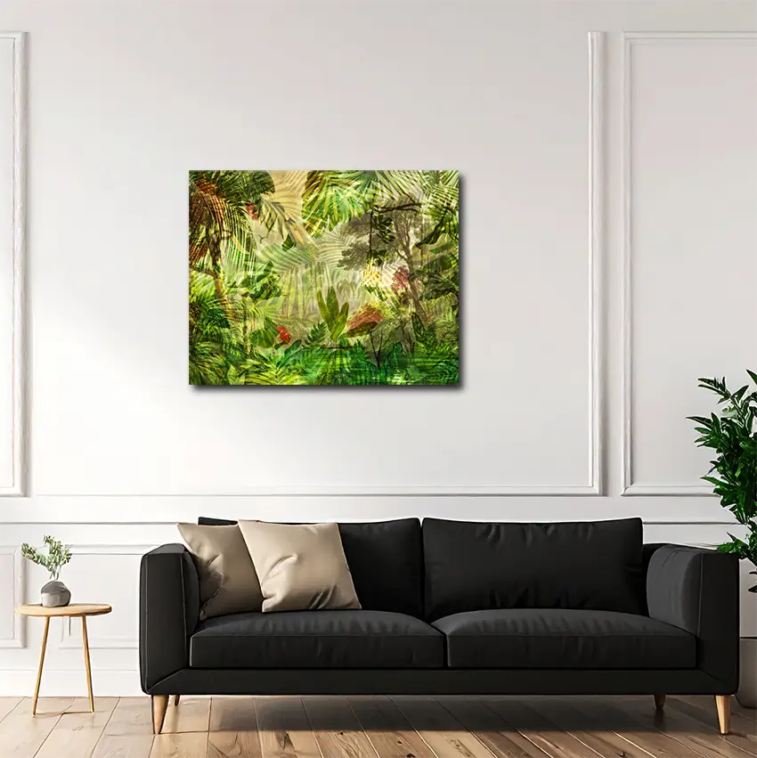 The artworks are carefully printed on fabric and stretched on wooden frames to convey a certain warmth. They are available in various sizes.