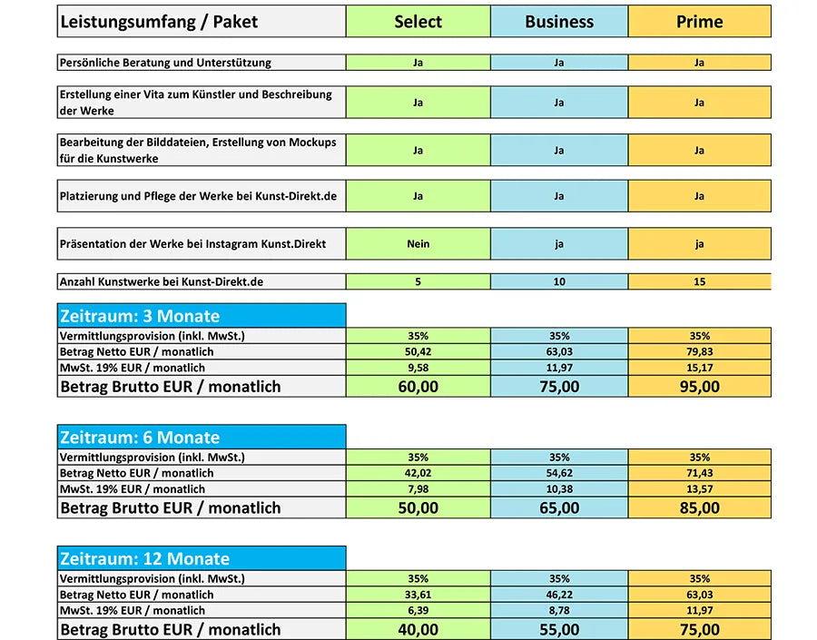 Quels avantages avez-vous en tant qu'artiste chez Kunst-Direkt ?