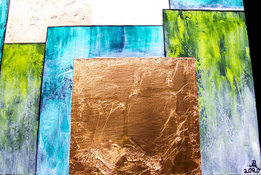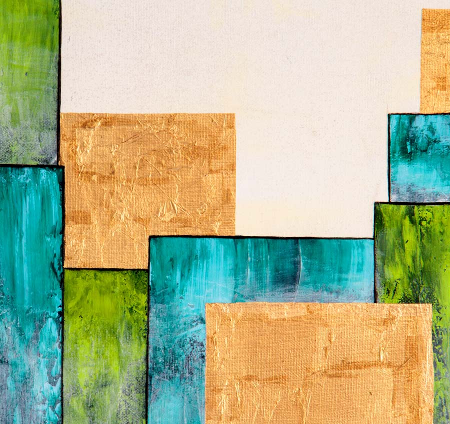 Tirée de la série « Common City », cette image reflète l'idée de visiter ou d'emménager dans une ville : on le fait avec impatience, car elle est porteuse de promesses. L'or de l'œuvre symbolise cela. Les éléments verts symbolisent la vie et la nature au-delà des humains. Le bleu représente les formes humaines inorganiques, les reflets dans le verre, la mélancolie, le désir, et le fait qu'avec le jaune et l'or, il crée la vie, ne serait-ce qu'au niveau émotionnel.
