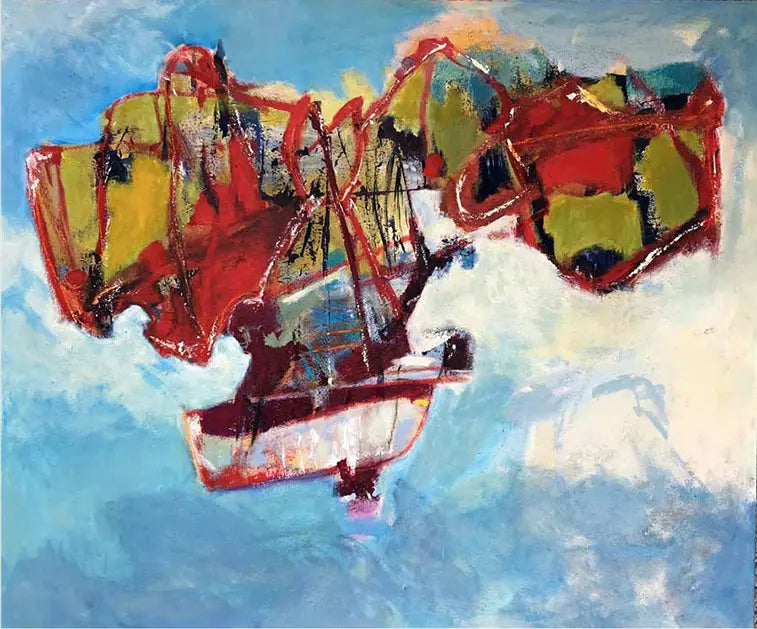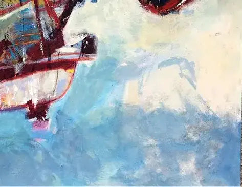 Das Werk "Alle in einem Boot" von Annette Brasch fängt die Essenz von Bewegung und Zusammengehörigkeit mit einer beeindruckenden Dynamik ein. Die kraftvollen, leuchtenden Farben und die energischen Pinselstriche erzeugen eine faszinierende Komposition, die die Betrachter in eine Welt der Abstraktion und Emotion entführt. Das Boot, als zentrales Motiv, erscheint nicht statisch, sondern schwebend und fast träumerisch in einem Meer aus lebendigen Blautönen. Die fragmentierten Formen und die kühne Farbpalette verleihen dem Bild eine einzigartige Textur und Tiefe. Braschs Arbeit ist ein bemerkenswertes Beispiel für zeitgenössische Malerei, die durch ihre expressive Kraft und ihren positiven Ausdruck besticht.