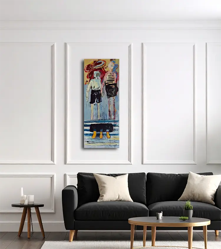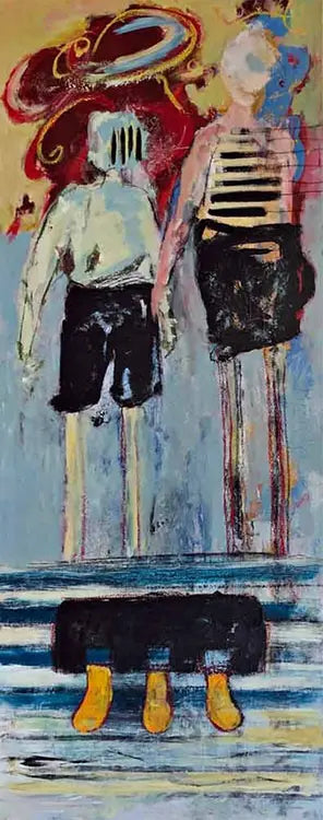 Annette Braschs "Das Spiel" ist ein Gemälde aus ihrer seit 2005 bestehenden Serie "People". Die Künstlerin erfasst die menschliche Existenz auf nonverbaler Ebene, indem sie expressive, gestische Malerei mit konkreten Darstellungen verbindet. Sie übertreibt Haltungen und Gesten, um verborgene Charakterzüge hervorzuholen. Das Werk ist eine facettenreiche Auseinandersetzung mit der menschlichen Verfassung, die die Rolle des Individuums in der Gesellschaft reflektiert.