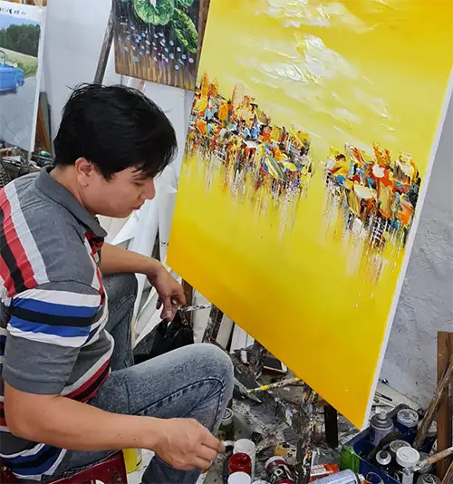 Die Werke des Künstlers zeichnen sich durch eine besondere Sensibilität im Umgang mit Farbe, Komposition und Atmosphäre aus. Dabei bewegt er sich stilsicher zwischen Figuration und Abstraktion, oft inspiriert von der vietnamesischen Lebenswelt, von Naturbeobachtungen und inneren Stimmungen.